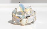 オパールは、さまざまな色彩がまるで戯れるかのように輝きながら、虹色のプリズムを作り出す美しい宝石。これは「遊色効果(プレー・オブ・カラー)」によるもので、粒子の大きさによって光の屈折が変わることで、このように唯一無二の豊かな色彩を生み出しています。満ちあふれるようなその輝きから「幸福を招く宝石」として、古来より多くの女...